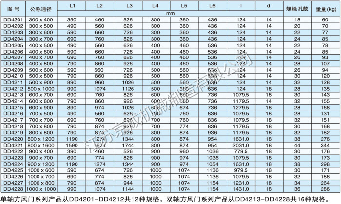 單軸、雙軸方風(fēng)門(mén)系列產(chǎn)品尺寸及理論重量