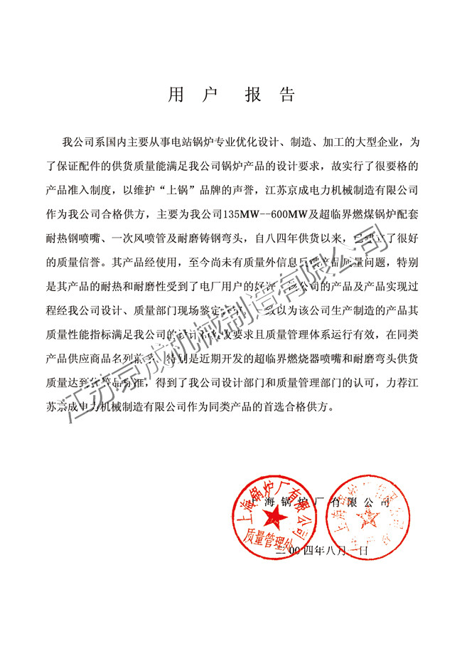 您好,歡迎訪(fǎng)問(wèn)江蘇京成機(jī)械制造有限公司官網(wǎng)!公司主營(yíng)產(chǎn)品:鍋爐配件|耐磨耐熱鑄鋼|金屬陶瓷復(fù)合磨輥。