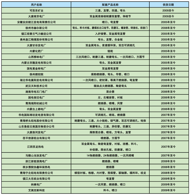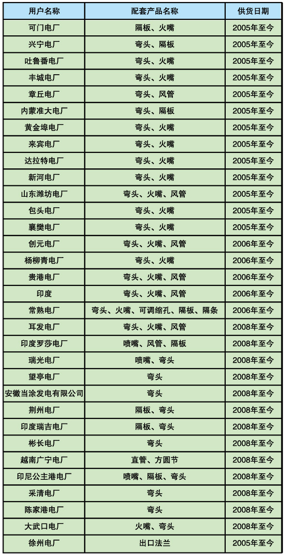 上海鍋爐廠配套項(xiàng)目的產(chǎn)品業(yè)績