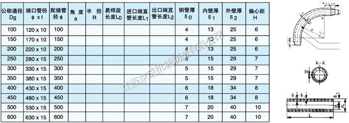 彎管尺寸及規(guī)格 ( 表中a、R、L0、L1、L2依設(shè)計(jì)要求確定 )